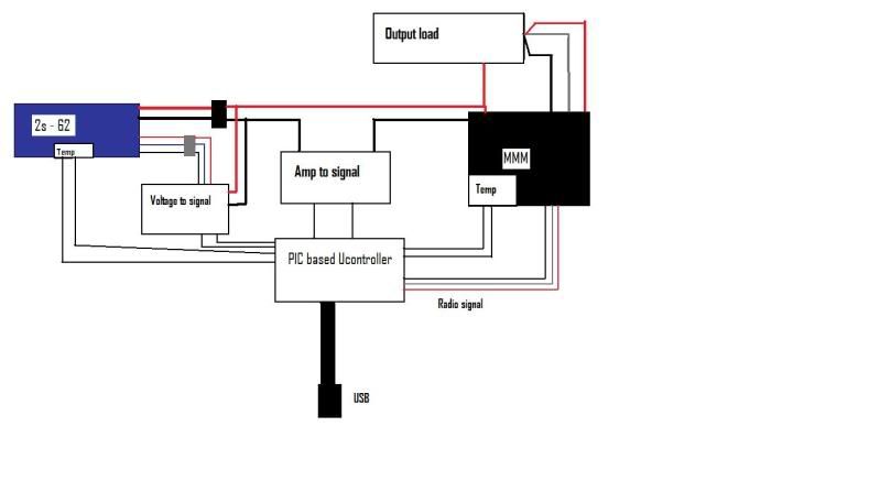 With design it records the main pack voltage with no load, individual cell voltages, pack temp at start, and esc temp at start of test. While testing it would track the main packs total v drop and cell v drop in coralation to different applications (sudden throttle/brake, "cruise" etc) as well as peak and average current draw over a given period of time. All this info will be controlled by a PIC (hopefully most the techy heads know what they are) as well as throttle control will be handled by the pic considering, pics have a servo function with variable pulses and so on, this all will sent via usb to a pc to be debugged on the screen, which I believe theres also a command to "print" the debug values which may be similar to copy paste in which case the values would by plugged into an excel sheet then plotted on a graph. As for the voltage to signal and amp to signal it would basicly by some form of an analog to digital converter that turns voltages/amps to digital pulses sent to the pic and recorded.