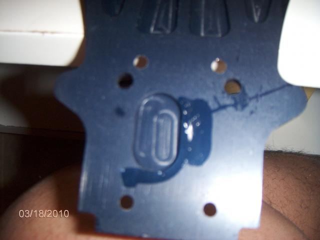 Scratch on the RCM chassis from not putting the diff in the correct way OOPS the other day what the hey first build> ok thats what the grooved area is for LOLthats bottom part is my leg since you guys are quick to pick apart lol