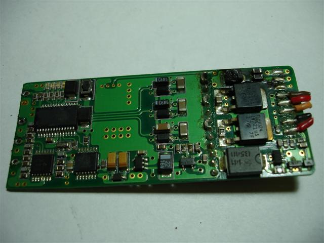 Note how there was a short circuit from the brain board onto the cap buss bar, a good amount of solder was melted in the process... and I can tell you that I took a good amount of heat from a 250watt iron to melt solder on that buss bar. It must have been quite the nasty short, yet my batteries are still alive, thankfully, I just hope their performance has not been compromised.