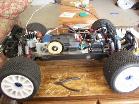 I would rig up some skid plates for the top of your shock towers, because I can tell you right now, they won't last a pack's worth of charge. Unless you set your slipper loose, that thing is going to wheelie so fast you won't believe it. I have experience with that same setup, except you are running 2.5v hotter than I was.