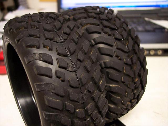 i tested the tires out yesterday afternoon, and it actually made a very noticable difference on my little track, dont get me wrong it still spun alot slid all over but it was much more controlable, i can pitch the truck into a slide and just hold around the turn, it spun out completely ALOT less, forward traction was still to be desired but it didnt pull hard to either side like the stock tires,