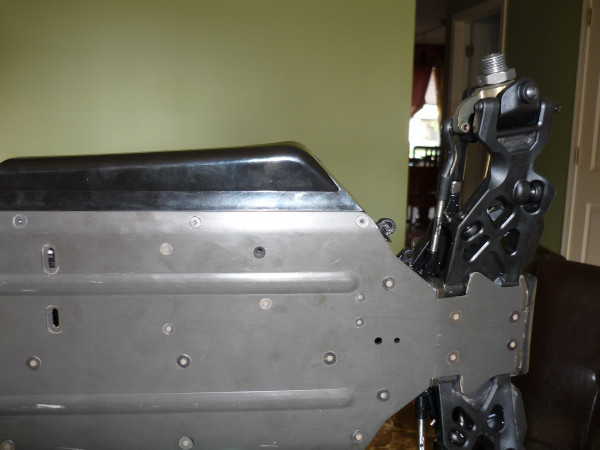 Cleaning this buggy after its first race was brutal. Not having stone guards with the giant body that doesnt fit the car = a mess! My first mod was to fit a guard on the right side. The right takes all the damage <Servo, ESC, transmitter box, and motor> The left side doesnt have anything to get destroyed, the battery box takes the beating. FYI the body is a JC High flow for a RC8 trims out fine.