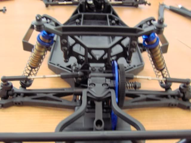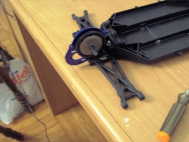 Now we install the motor plate and slipper. This is an easy process, but make sure you put a little locktite to secure the motor plate. I like the design of the slipper, though I wish they had used a more standardized spur gear. I don't like that I have to use a Kyosho spur. I would have preferred something I could get from Kimbrough as well to make it easier to get ahold of options. If I buy a gear or two though, I should be set.