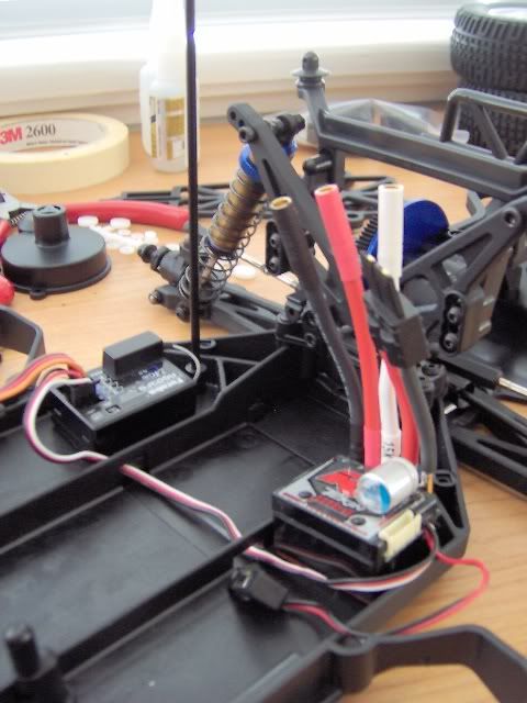 Reciever and speed control go in, I used an RS Pro and a Futaba FASST reciever matched to my 3PK.