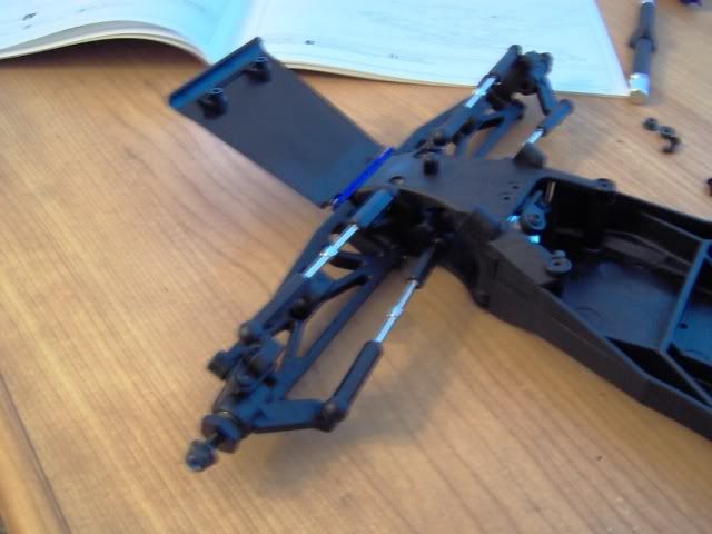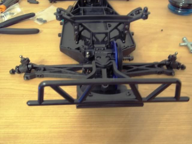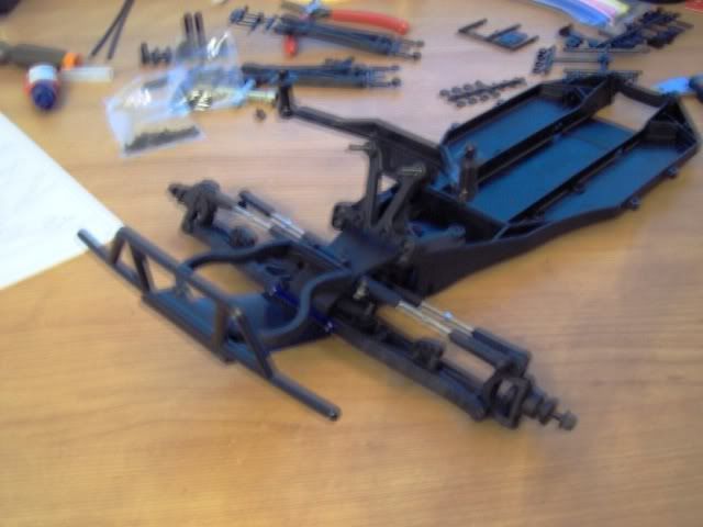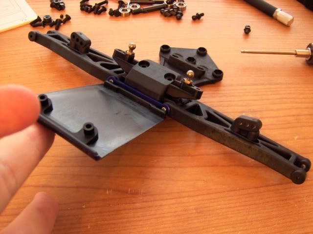 Then I secured the steering assembly and the front bulkhead assembly to the chassis. I did run into a small snag here...