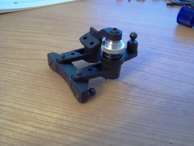 Next we assemble the arms to the front pivot block. All the hingepins in this kit are captured, which is a very nice feature. The front pivot block has 2 holes in it to use setscrews to secure against 2 flats on the hingepins. Those hingepins won't be going anywhere.