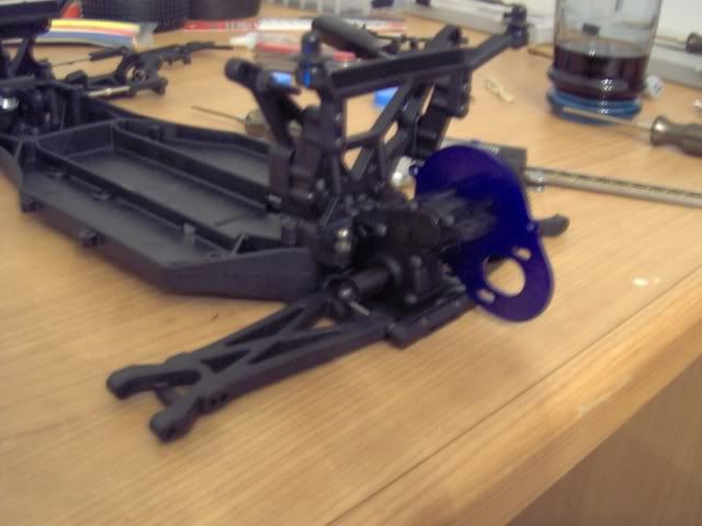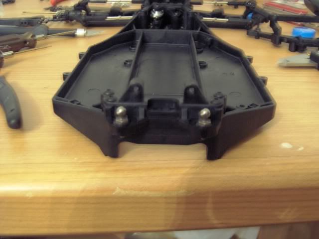Now we attach the rear bulkhead to the chassis. Again with the plastic spacers.
