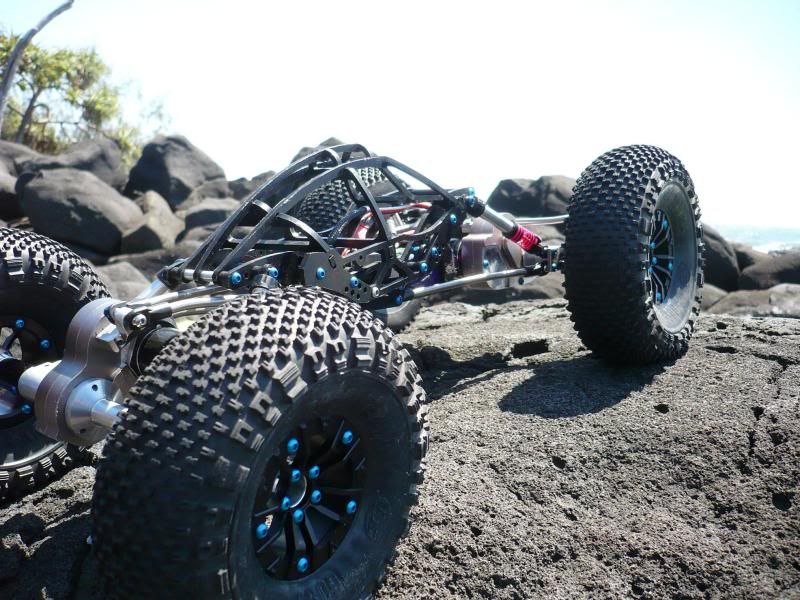 Went out for a crawl on Saturday with a couple mates for it's first test drive. It wasn't 100% finished yet, but almost there. I decided to run the BCs and eritex wheels simply because I made my weights to the absolute maximum size possible and they no longer fit VP wheels. I had my old faithful firm inner, soft outer CI foams from my rovers, but I believe they are a bit firm. The other problem I had was the Charlotte's and the BCs would not play nice and I ended up pulling 3 beads (and this is after about 4 goes at mounting the things properly). The slot in the eritex wheels is simply to small to hold any bead properly IMO. So they will be getting lathed shortly.