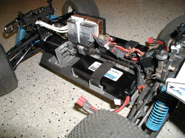 With all the fun I had with the 1/10th scale T4, I started to research brushless conversions for 1/8th scale vehicles. With the help of a friend, I managed to find my way to the RC-Monster forums and discovered a wealth of information to learn from. I spent a good 5-weeks doing nothing but educating myself on the ins and outs of 1/8th scale brushless conversions, everything from ESC’s, Motors, batteries, motor mounts, proper layout to emphasize good balance, etc, etc. Amazingly enough, everything thing I could have possibly wanted to know was found by using the Search tool within the RC-Monster forum. Of course, none of this good information would be available to search for unless you guys existed and conversed so much about it. So to all of you I say Thanks!