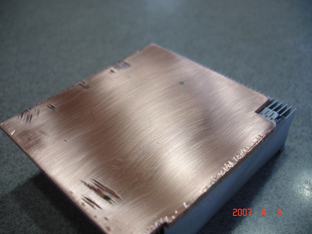 I just finished lapping the heatsink. Dang it was hard work, i went too deep with the grinder beforehand, the sanding could not remove the marks.