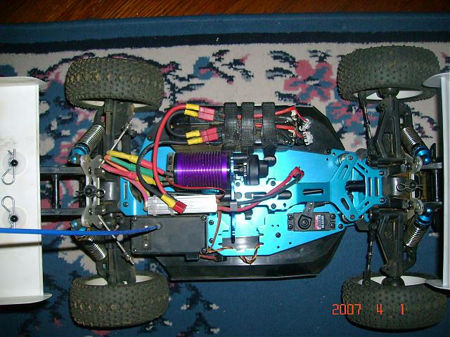 Right now I'm only running my 3S 2200mAh with my TC3 Truggy with the HW 120A controller and Novak HV4.5 motor. I get close to 20 minutes of insane run and braking action. I get constant 10 minutes plus on the 2 Kong Power 3S 2200mAh in my MBX5T. So for only 6 minutes the single 30C 6S 2200mAh pack will do. The balance will be some what perfect as your motor will weigh about the same. The pack is small enough to give you options to move things around. I have attached a picture of an initial set up in my Ofna. Here you can see another arrangement: http://www.rc-monster.com/forum/show...9&postcount=12, http://www.rc-monster.com/forum/show...0&postcount=13. I might get the 30C 2200mAh and add 2 in parallel in my MBX5T for a killer set up.