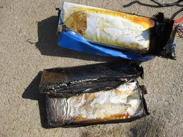 I was about to connect one of the H packs to my cordless weedwacker when it shorted rsulting in the following photo. No flames just a ton of smoke. Only 2 cells (6s pack) vented. Overall the performance have been great but I'd recommend re-doing the packaging especially if off-roading or jumping.