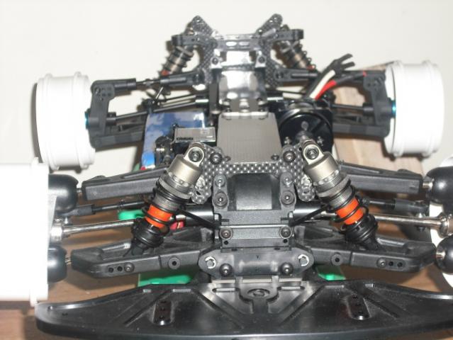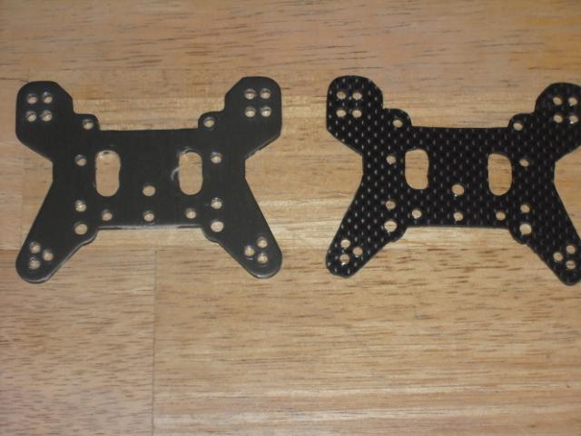 Sitting around with a little time on my hands, since I completed the CF top place and servo plate, I decided to take it a bit further and cut out the front and rear shock towers. These came out great considering the work was done using a hacksaw and an assortment of dremel bits. Here are the stock aluminum and the CF parts side by side and installed on the car.