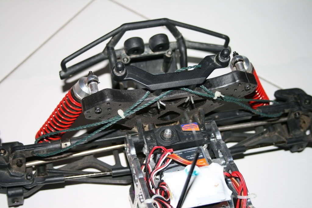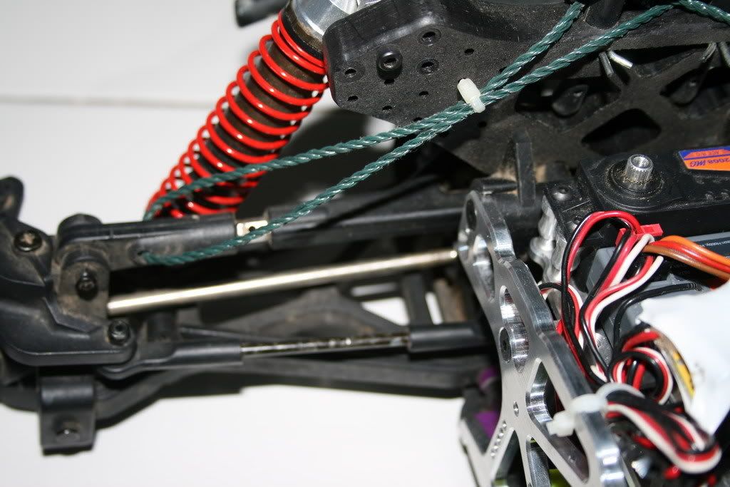 No major issues with this so far. It's not that difficult to get to the correct length. I am using one continuous piece of string & tied it together at a point at the shock towers (note : tied the string to itself, not to the tower or body post thing)