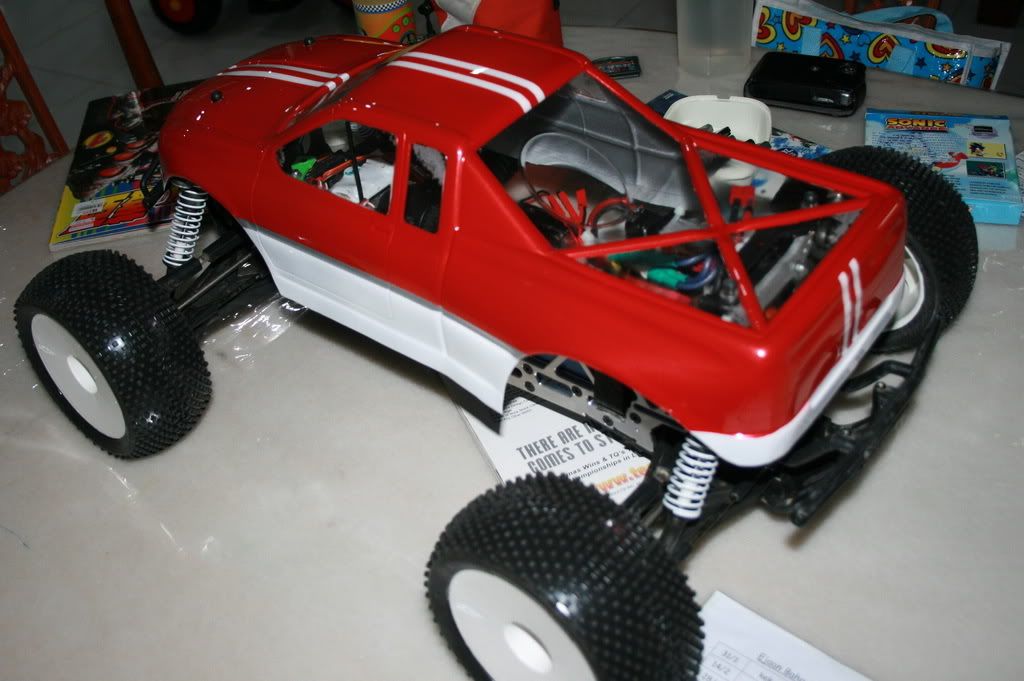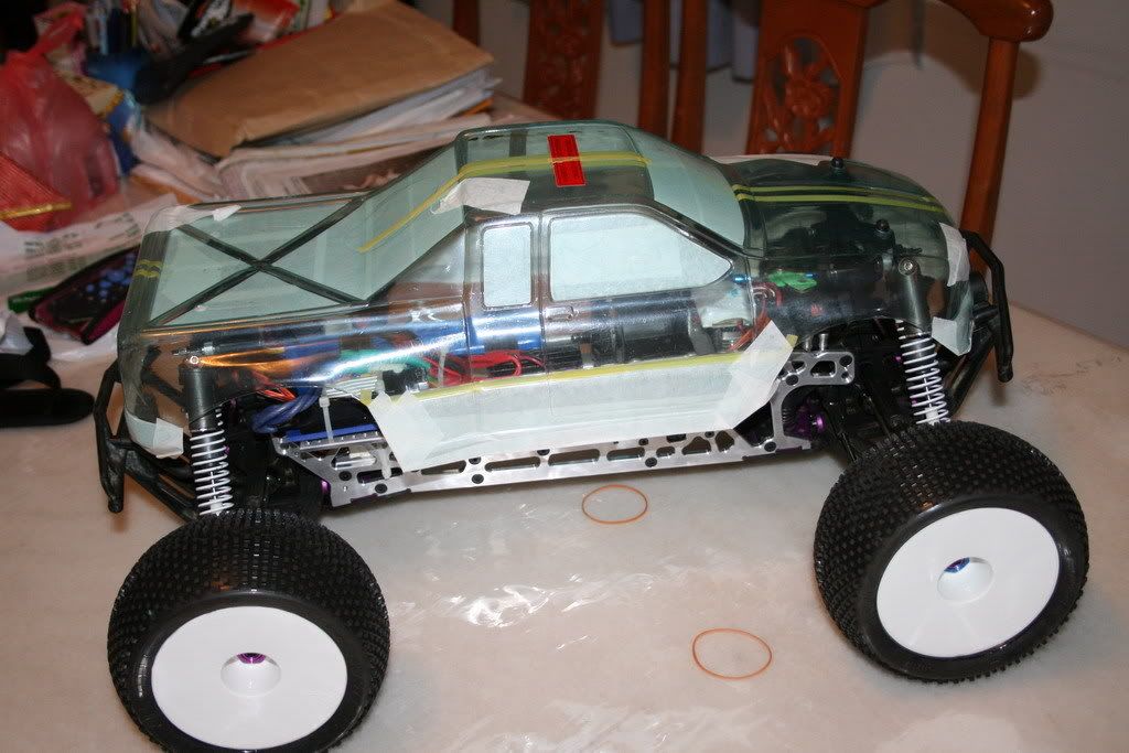I find that the old MGT body fits this extended savage pretty well. What do u think ? The CEN shocks work out nicely too, We'll see wether they can stand the abuse that will be thrown at them  .