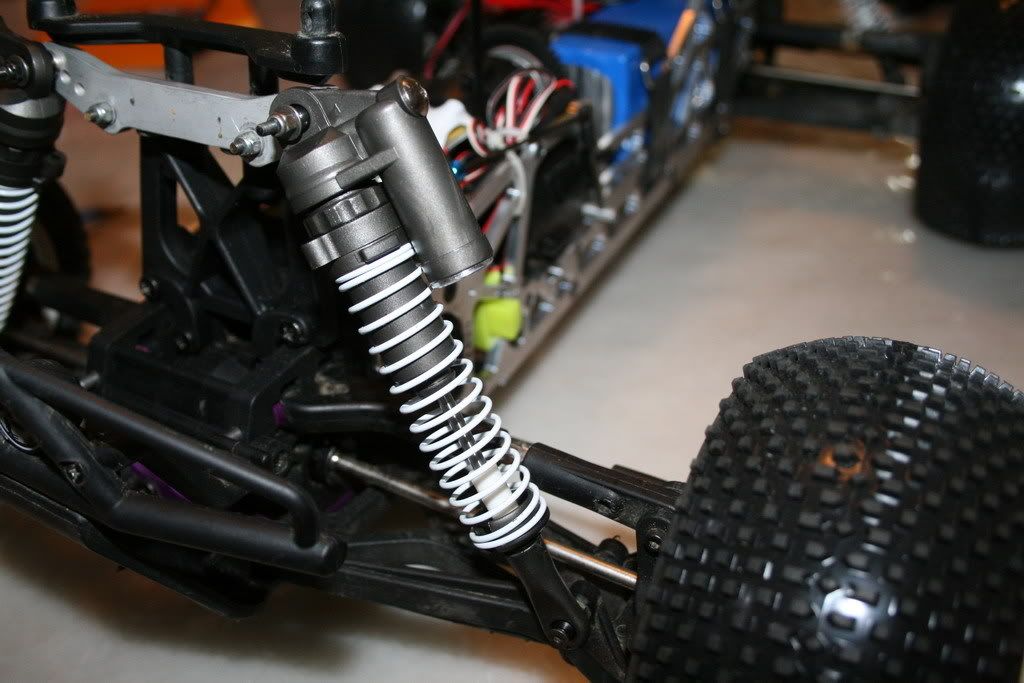 Thanks Joe. Yea. Id like to see how its set up in a little more detail. I want to limit the down travel of the arms a bit and I feel that just shortning the stroke on the shocks will just tear the shocks apart in any kind of crash.