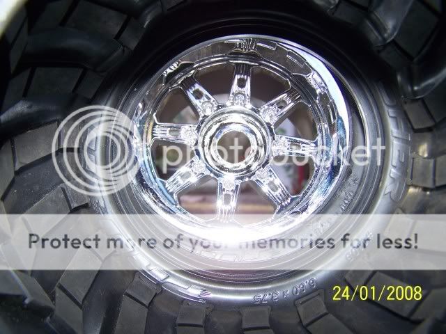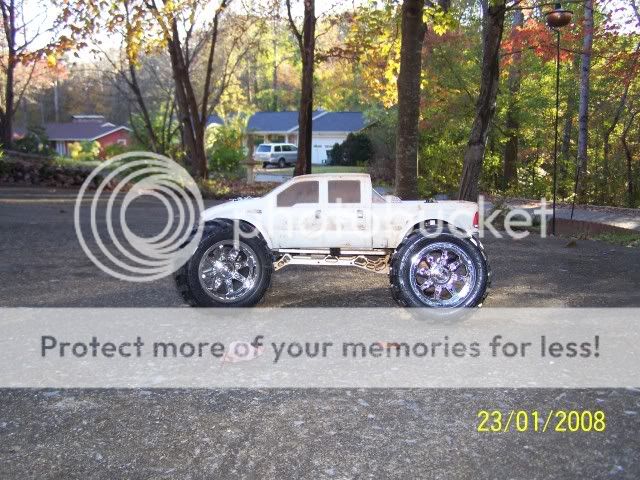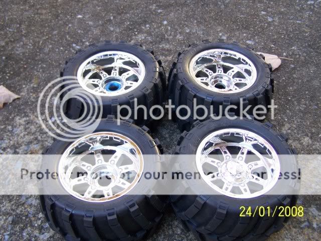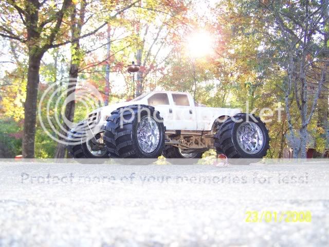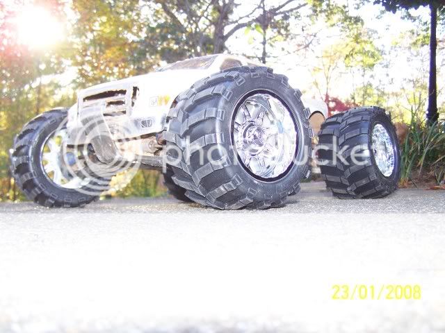 Thinking about getting some 40 series mashers since my drive train is as just about as beasty as it gets I think I can handle it and I want more ground clearance but can't get much more with the suspension because the shafts pop out of the cups and get all bent up. Plus when I get my slipperential installed I'm going to want to gear up and the big tires will really help. Also I don't think it will look goofy because my wheelbase and stance are big. Big tires for a big truck! And maybe they won't slump to one side like the badlands do currently.