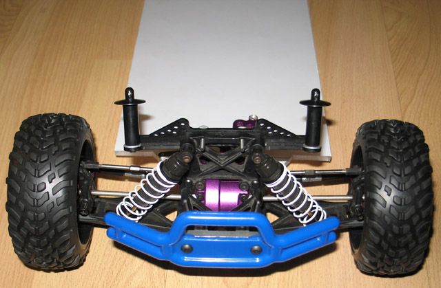 -front body mount was cut from 3/8" thick polycarbonate and the posts are cut-down Slash front body posts