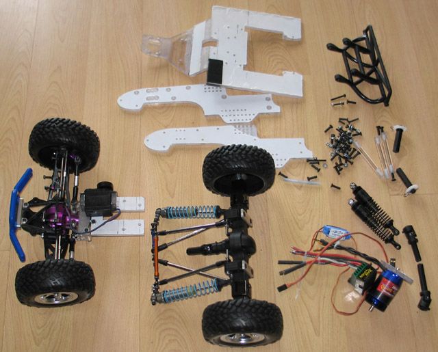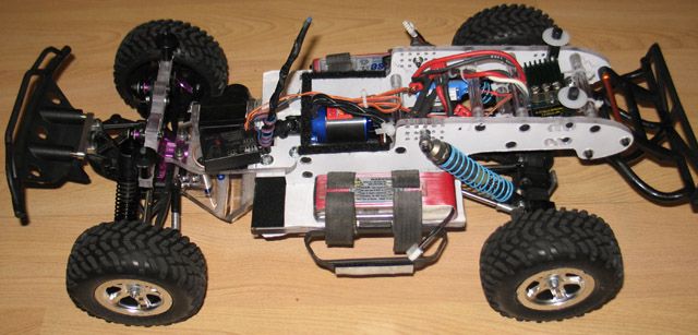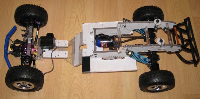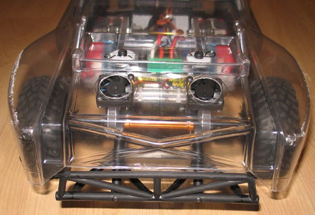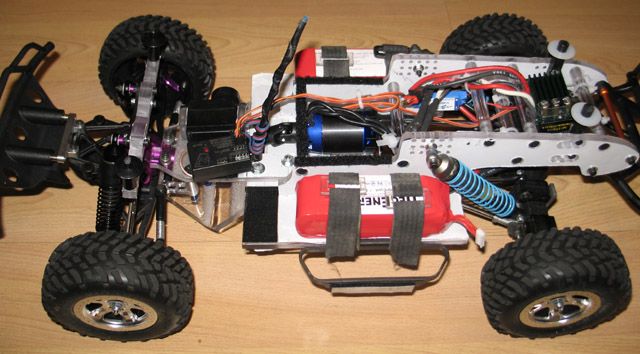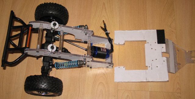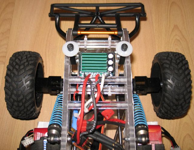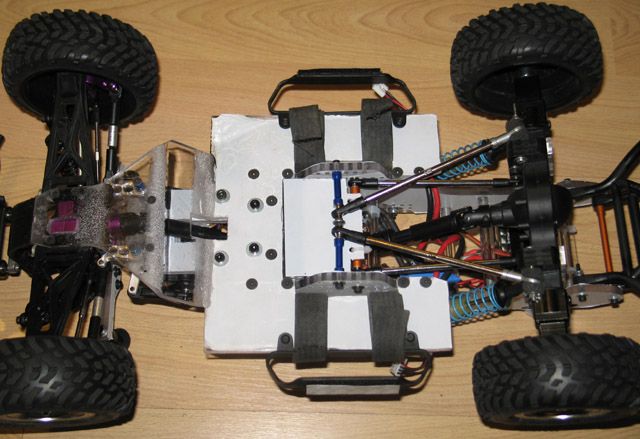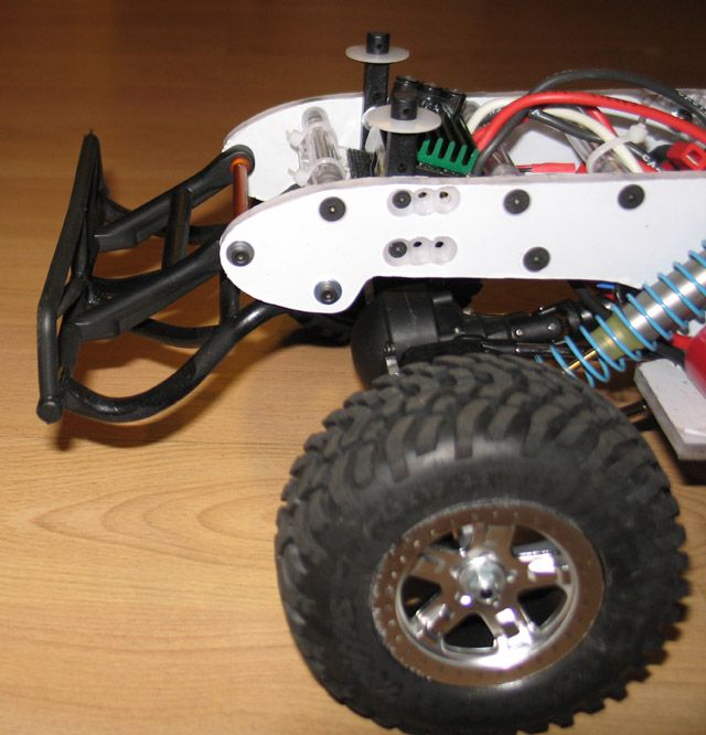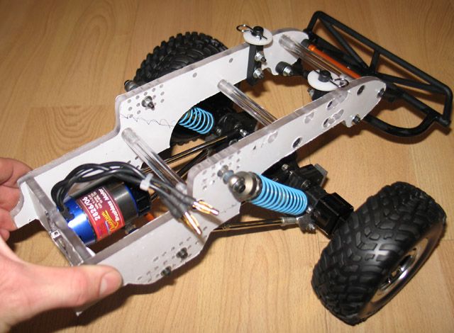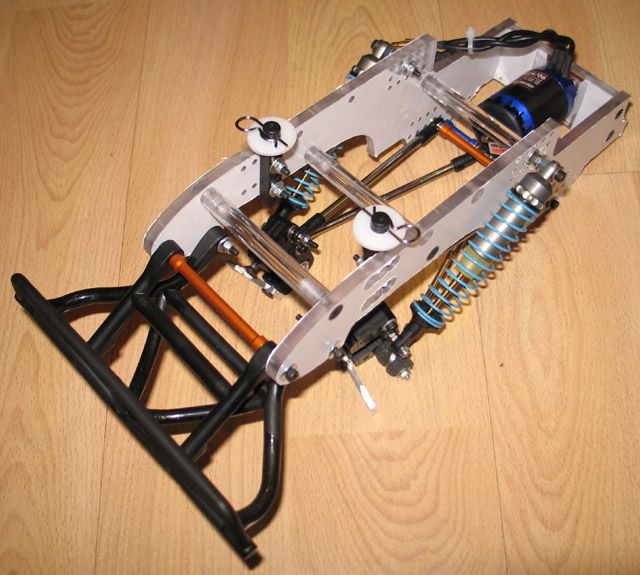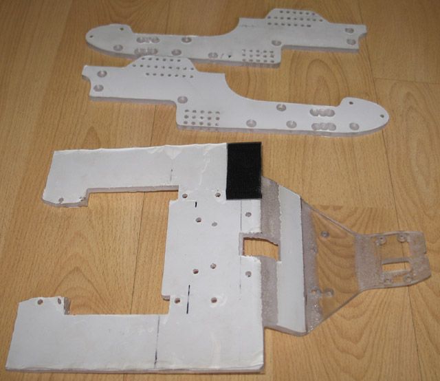 -entire polycarbonate chassis, heated and bent with a propane torch. The two side plates were made together to ensure exact precision.
