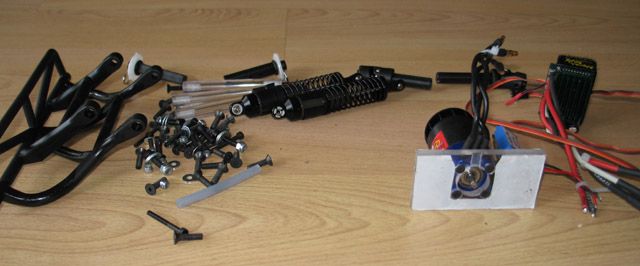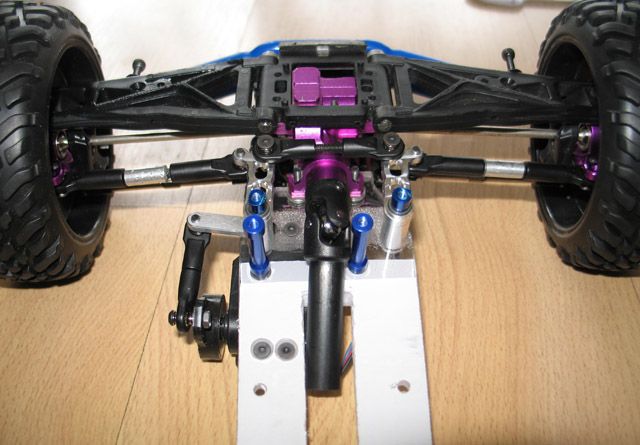 -the FLM aluminum bellcrank for the Rustler was fitted, along with 5x8mm bearings