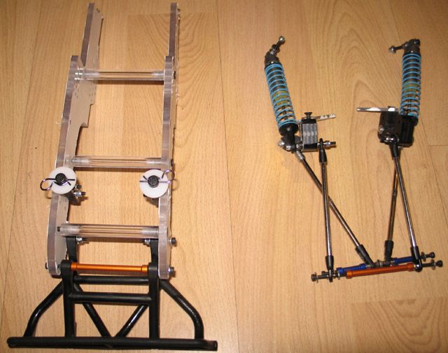 -lower links are T-Maxx or Revo steel steering turnbuckles, upper links are Revo steel pushrods