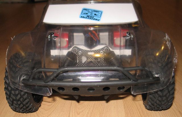 -the rear bumper is from a Slash, but the bottom mount was bent with a propane torch and the top mount was flipped