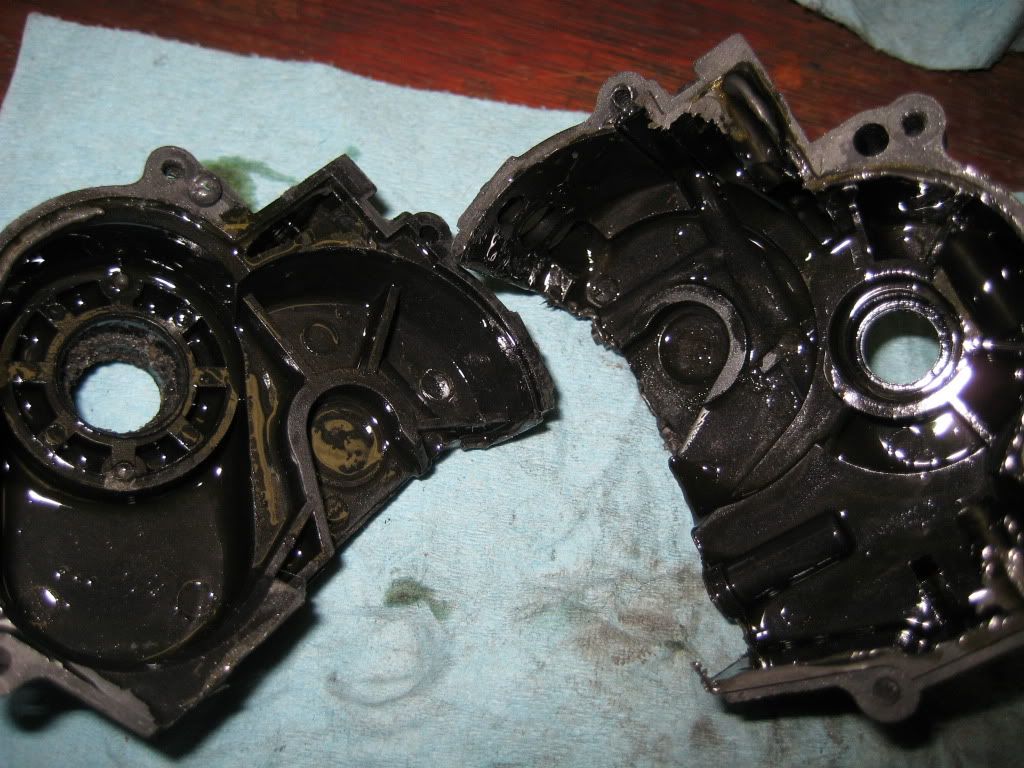 I transferred everything over to a spare tranny case and sealed it up tight. Even though the gears have more than a couple dozen runs on them they still look brand new.