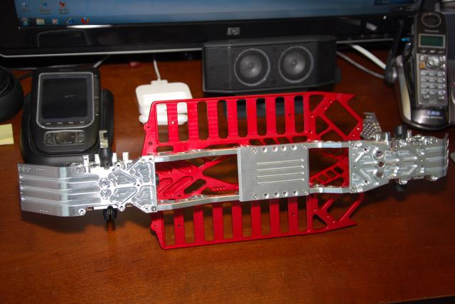 Rebuilt the slipper with the 46 tooth spur, notched the chassis, and everything fit perfectly. I need to drill the holes and mount the slipper next. Then I need to figure out how long the dog bones need to be. Neil do you or anyone else know how much Mike charges to make custom dog bones?