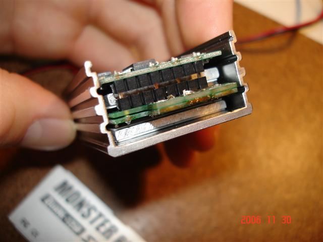 Anyways, i go it all apart, except for taking it off the case. I notice that there is two alum. slabs one on both side of the bottom circuit board, and it looks like they are the same FET's ???!!! What!? Do you know if this is true? Or are they for something else? CHeck the pics, if they are the same FET's then maybe all they need is some heat spreading? And the thermal pad is just to attach to the case? It also doesn't really look like the pads are .5mm, they look thinner than that, maybe .3mm? I don't know... I don't want to take it apart yet, i don't have Thermal Adhesive at the moment, i'll pick up some Arctic Silver stuff when i can.