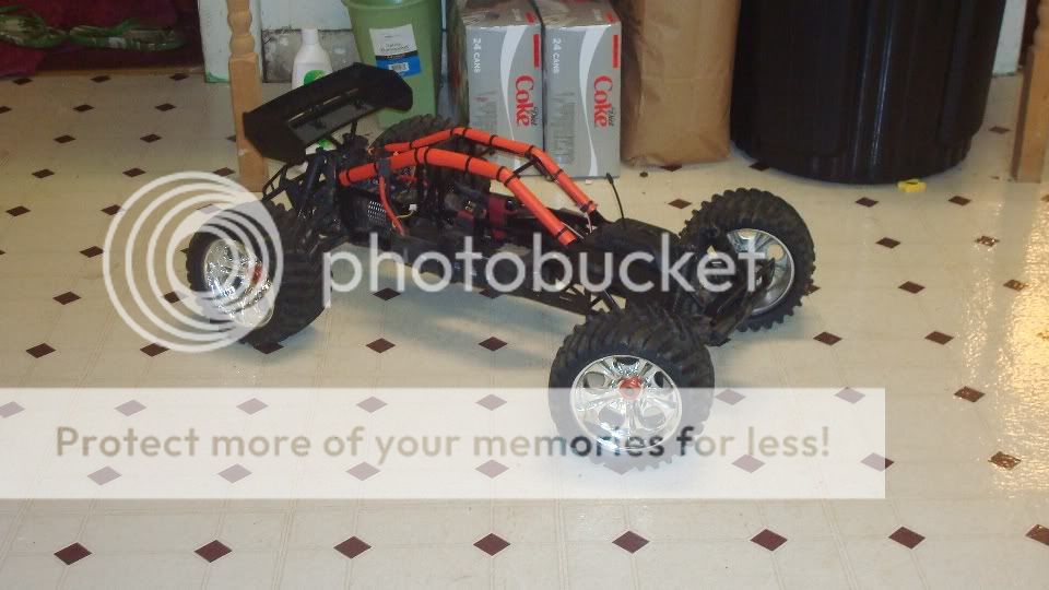 i just got some cen genesis tires and rims for mine today, they look sweet on this truck, seem rather light as well compared to the 40 series mashers. also looks alot nicer with my orange 23mm hubs on there.