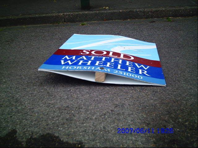 There has been a for sale sign pulled up and laying on the pavement at the end of my road for a couple of weeks now, so I thought I would be a good boy and tidy up the terrible litter, I took it home with me and a couple of minutes with a saw and the cyno produced this, it's just my style, lots of good entertainment for no financial outlay and little effort.
