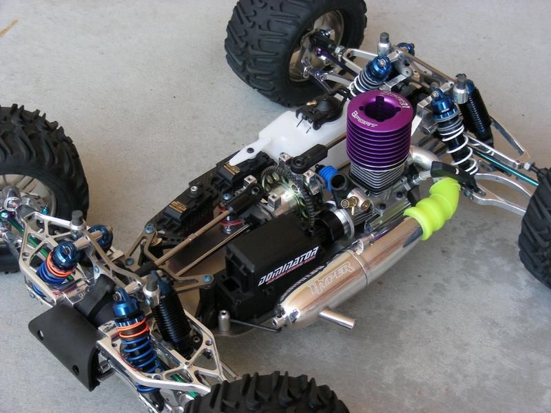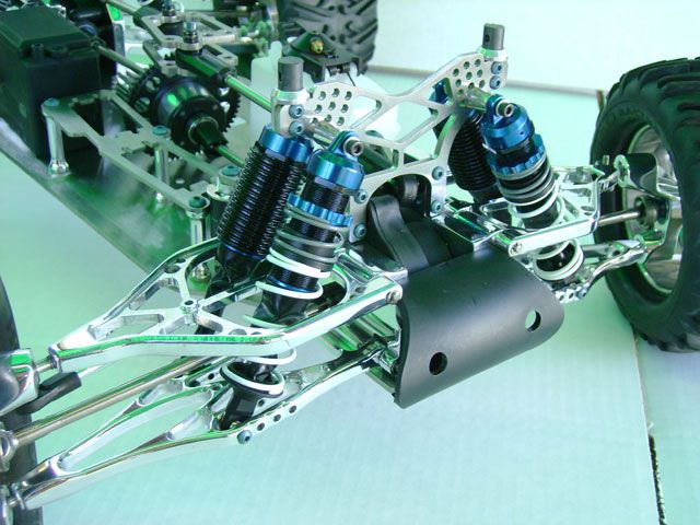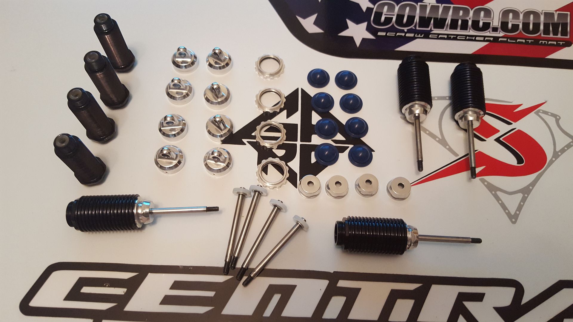 A bit of background as to why I want to only use metallic blue stems back to when I first got into this hobby. My first hobby grade RC was an OFNA Dominator. It did not take long for the modding bug to hit, and all of a sudden I was learning about great companies like Smash & Bash Racing, and DUH Engineering. Both being backyard startups, SaBR had already closed its doors, but DUH was just getting started. I got to know Eric quite well, and ended sending him quite a lot of my money for various Titanium parts he was manufacturing at the time. Here is a pic of the various parts I purchased from him back in the day: