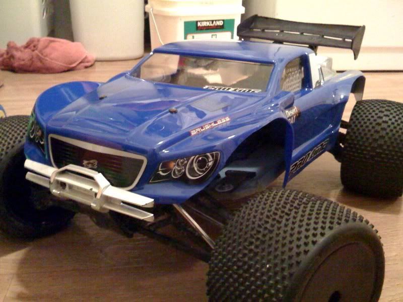Well, I've got this crazy idea to put a corr type shell (Proline desert rat) on my Gmaxx- please throw all logic out the window at this point. I know the wheel base is about a good inch or two out, but the corr design has a big ass on it, so I can trim the rear wheel arches to fit quite well.