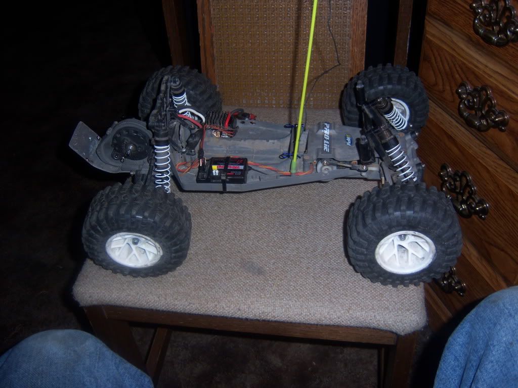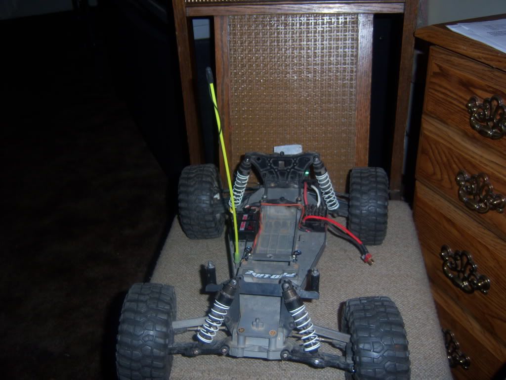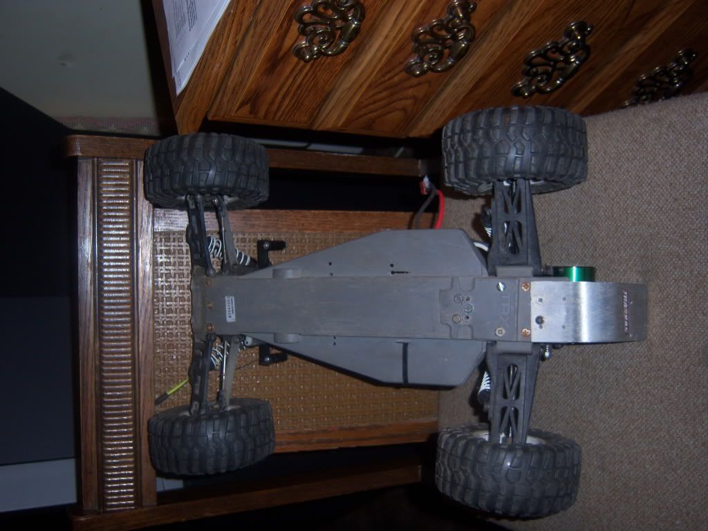 The bad. Deans need to be re solder'd on the Neg. side. Broken Chassis but repaired with a trx skid plate and some bracing.one rear rim has a 1 inch crack on the inside, from when i slid into a curb.i have a rpm front bumper, but i ran into a basket ball and it broke, but will send along. Unknown if rpm will warrenty it.