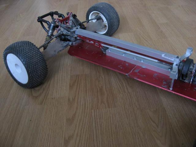 This was its first run on this type of surface. Still not pushing the car to its limit due to running it without body. You can actually hear the long centershaft rubbing against metal especially when i release throttle to neutral. The aluminium tube copes well with torque as it doesn't twist, but is to thin and starts to swing. i can actually bend it with my fingers. Using a thicker aluminum tube or even better a steel tube should cure this problem.