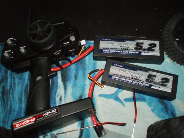 The tires are ofcourse are too soft and minor other flaws but its a real blast to drive.The honeymoon with MA batteries if over too and I now have several Turnigy batteries.These in the pic are 5200 2s 30C and they are great. I had to do minor mods to fit those huge battery wires.Also bought a Tactic 2.4ghz for 80 bucks.The am radio is worthless with a brushless system.Here r some pics.I also added thr RPM Truetrack and done some suspention tweeks.I hope to add swaybars soon.Bottom line is its fun and not alot of wrencin time other than cleaning