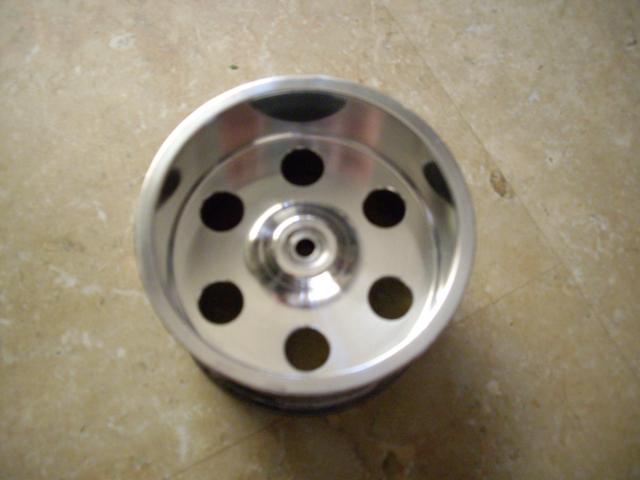I just picked up these wheels in a trade and I have never seen these before. I'll give as much info as I can. They are standard maxx sized and made from aluminum. They weigh 3.85oz each. There is no hex in the back. The hex is removed and the pin locks into the wheel. Any help identifying them would be great.
