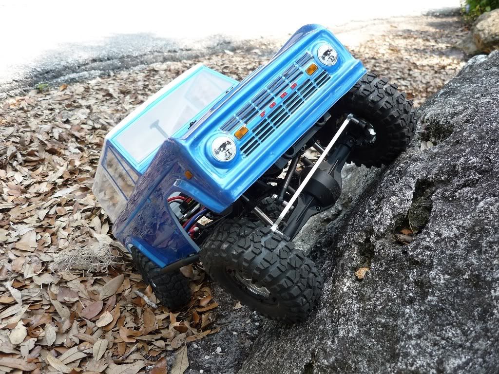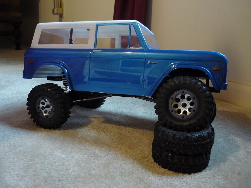 5) For wheels/tires I have the stock Axial beadlocks with Flat Irons, and also RC4WD Pro10 stamped steel beadlocks with Proline TSL SX Super Swampers.