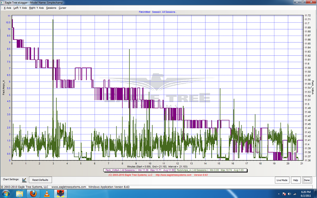 6) Electronics are Sidewinder V2, Holmes Hobbies Revolver Black 1100kv outrunner, 3S 2200mah 20C Turnigy lipo, and Blue Bird servo. Servo is just a temp, I have a Spektrum S6030 on the way (278 oz-in, 0.15 sec). I used my EagleTree to test out the setup and it drew 10A peak, with an average of 1A. Should be able to get right around 2hrs runtime on a charge.