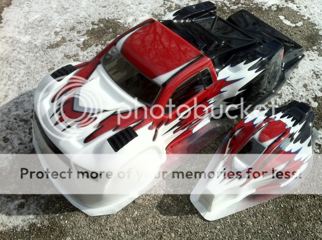 Darkside Designs is my exclusive painter now for all of my racing trucks. Here is a shot of my B4.1 and SC10 bodies for the same race day.
